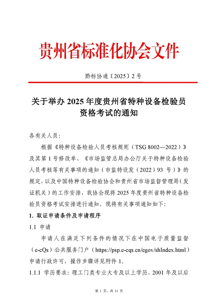 转发:2025年度贵州省特种设备检验员资格kao试的通知